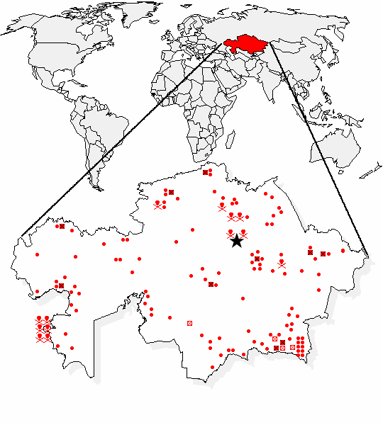 Astana (Zelinograd) (2 Lager; offene Gruben-Uranbergwerke)