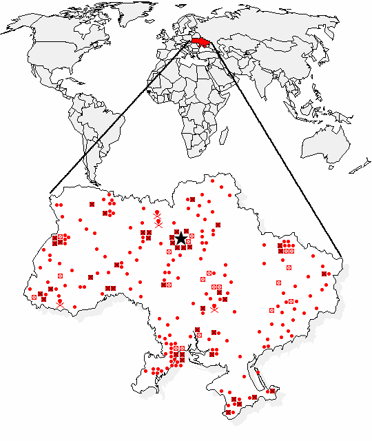 15 für Kinder (Arabatskaya Strelka, Bakhmach, Chernigov, Drogobych, Kharkov, Kherson, Korosten, Kremenchug, Manevichi, Odessa [3], Petrovskoe, Rovenki, Sarny)