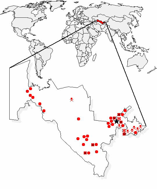 Referenzen: Uzbekistan: death in detention of Orif Eshonov, posted on www.kchr.org/documents/iol/omct/, Kyrgyz Committee for Human Rights, World Organization Against Torture (OMCT), June 2, 2003 (on active prison in Shaikhali). Uzbekistani political prisoners get amnesty after repentance, posted on www.prima-news.ru/eng/, PRIMA News Agency, Moscow, Russia, Nov. 12, 2001 (on active concentration camp at Shaikhali). Shifrin, A., The First Guidebook to Prisons and Concentration Camps of the Soviet Union, Bantam Books, New York, 1982.